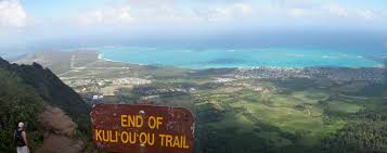 feet down into a valley while off in the distance is Kaneohe Bay and many other